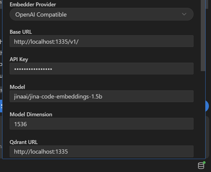 Your new Roo Code indexing settings (database-looking icon in the bottom right) are: